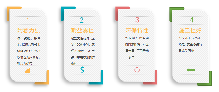 产品特性:附着力强、耐盐雾性、环保特性、施工性好
