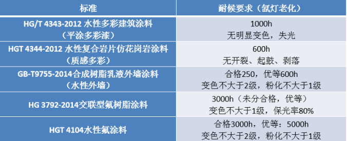 多彩漆作为这两年来建筑市场的新宠,由于其仿石效果更逼真,目前在大型高层小区里使用特别多。其行业标准HG 4343中要求涂层耐候性达到1000h,算是比乳胶漆有了大幅提高,但是要求也仅有氟碳漆的1/4,其实在户外使用效果并不理想,相对来说多彩漆的颜色比一般乳胶漆外墙的颜色更加鲜艳,因此耐候问题其实更为突出。另外但是目前多彩漆的真品种水包砂产品的又出现了真石漆耐污不佳的问题。